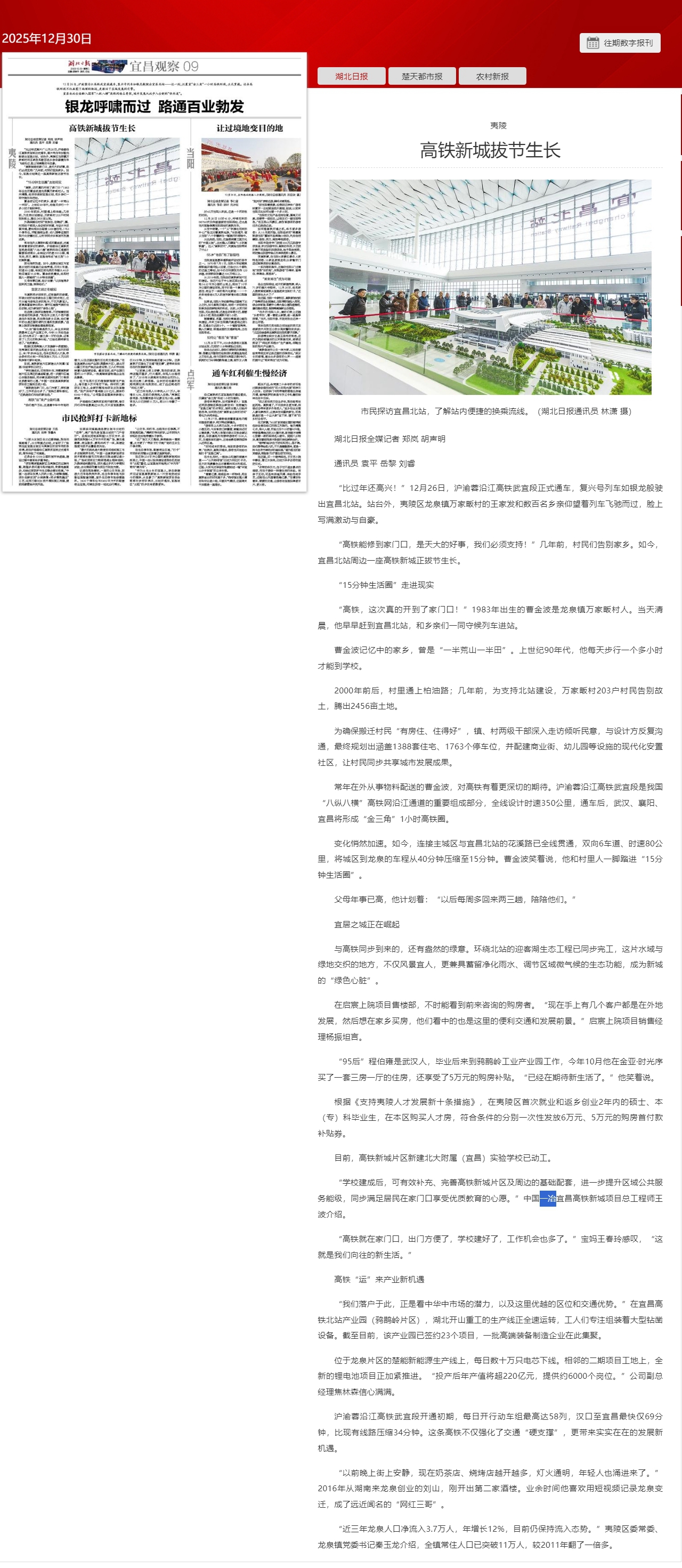 湖北日報:高鐵新城拔節生長