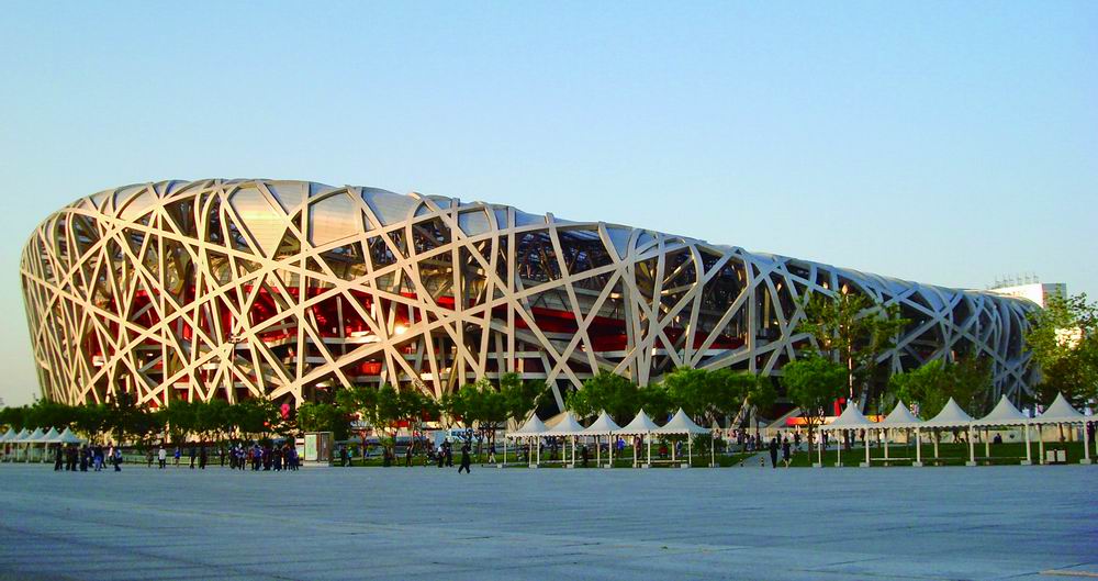 國家體育場位于北京奧林匹克公園中心區南部,為2008年北京奧運會的主體育場,2003年12月24日開工建設,2008年3月完工,總造價22.67億元。該工程鋼結構幾何尺寸多變,空間維度復雜,立體界面造型奇特,鋼結構所用材料均為中厚板,最厚達110毫米,且材質等級高,許多部位為異種材質焊接,重要受力部位選用了我國首次軋制的Q460E材質,施工技術達到國際頂尖水平。中國一冶承擔了12000噸鋼結構拼裝任務,所施工的P9線—P18線鋼結構拼裝工程被評為全國優秀焊接工程。