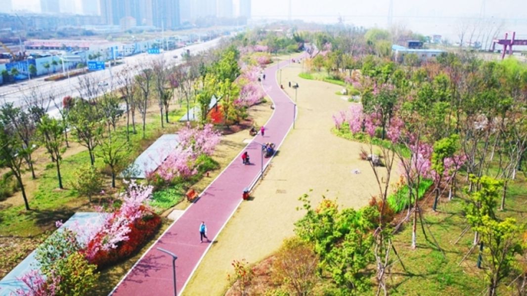 武青堤堤防江灘綜合整治園林景觀工程是武漢市打造“兩江四岸”濱江景觀的重點工程,總投資10.84億元,工程位于武漢市青山區(qū)長江南岸,全長7503米,總面積135.48公頃,新建園林綠化面積94.8公頃,工程于2013年10月22日開工,2017年6月26日竣工。該工程由體育運動、都市時尚、雨水花園、陽光草坪和青山記憶等五大特色景觀區(qū)構成,是集防洪、生態(tài)、民生為一體,以“延續(xù)青山文脈、演繹生態(tài)風貌”為主題,踐行“長江生態(tài)大保護”理念的綜合性園林景觀工程。